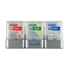 Portable, travel size kit contains the essential first-aid items you need to treat most bumps, burns and cuts and scrapes. Ideal for breakroom, mailroom and filing cabinets. Easy-to-read labels and see-through cases make care simple and fast. Easy-to-mount rack has magnetic, adhesive strip.