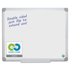 Earth-it! Dry-Erase Board is easy to clean and wipes clean every time. Dry-erase surface delivers minimal ghosting and staining. Frame is made of aluminum. Board is made of a high percentage of recycled materials. Board includes a marker tray and mounting hardware.