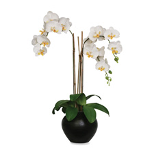 Artificial flowers are handmade to resemble elegant orchids. Realistic look and texture enhance any decor. Flowers are made of vinyl for easy cleaning and more durability than silk. Vinyl is stain-resistant and fade-resistant. Included planter is a ceramic pot.