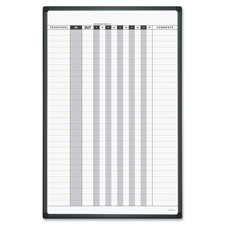 Magnetic In/Out Planner Board tracks employee schedules. Easily change activities and schedules with magnetic/dry-erase surface. Board has an aluminum frame. Ideal for office, home, legal, medical and real estate.