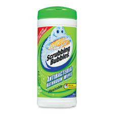 Scrubbing Bubbles Flushable Wipes offer a quick, easy way to touch up your toilet surfaces to a beautiful shine. Antibacterial wipes clean, disinfect and kill 99.9 percent of odor-causing bacteria, including Staph and E.coli. Formula also prevents the growth of mold and mildew. Wipes easily remove soap scum, mold/mildew stains and odors. Use on bathroom fixtures and tiles, chrome, fiberglass, baked enamel, porcelain, vinyl, stainless steel and synthetic marble. EPA-registered hospital-grade cleaner is not recommended for use on acrylic, brass or marble.