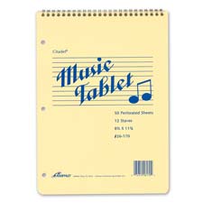 ESS 26170 Music Notebook, Perf., 3HP, 15lb., 50 Sh/PD, 8-1/2"x11-3/4", WE