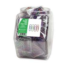 Tub display showcases Baumgartens Small Metallic Vinyl Paper Clips in assorted colors. Vinyl-wrapped paper clips are perfect for color-coding or attention-getting. Each paper clip is 1-1/8" long and meets or exceeds standard for RoHS compliance for lead, mercury, bromine, chrome and cadmium. Tub display contains 36 paper clips with 40 in each bag.