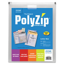 PolyZip Envelope features a zip closure that quickly and easily slides open and close. The unique PolyZip design protects your materials from the elements, forming a dust-resistant and water-resistant seal unmatched by traditional paper and poly envelopes. The clear front pocket allows for a separate area to secure a cover sheet or routing slip in a portrait format. Ideal for carrying letter-size documents, reports, presentations and catalogs. Perfect for storing and organizing as well. Envelope is acid-free and archival-safe.
