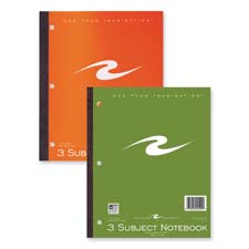 Wireless notebook features a three-subject format with two dividers and 132 college-ruled sheets. Cover and white sheets are three-hole punched to insert easily into standard three-ring binders. Each sheet in this tapebound notebook is perforated for easy removal.