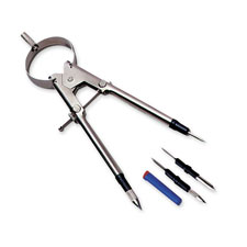 Combination bow compass and divider create accurate circles up to 8" in diameter. Design features interchangeable lead and ink pen. Compass/divider includes a cartridge of spare lead.