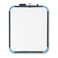 Dry-erase board features a plastic frame with contrasting colored corners. Erasable surface allows you to write using a dry-erase marker and erase marks to use again. Dry-erase board includes a dry-erase marker.