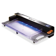 Electric trimmer cuts up to 30 sheets at a touch of a button for effortless cutting. Lighted, acrylic cutting surface allows accurate paper alignment. Locking paper clamp holds items firmly in place for precision cutting. Trimmer includes cutting guides for various paper sizes, photos, and angled cuts. Interchangeable blades and cutting strips are easy to replace to extend the life of your trimmer. Design features a 24" cutting length, standby mode for convenience and energy savings plus overload protection for optimal trimmer performance.