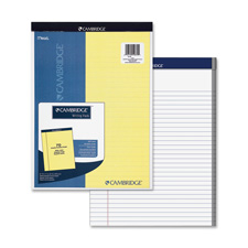 Writing pad contains 70 sheets of heavyweight, 20 lb. paper. Each letter-size sheet is legal/wide-ruled with 11/32" line spacings and a 1-1/4" left margin. Microperforations allow clean tear-out. Design also includes a stiff, 80 point backing for portable writing convenience and a protective cover.