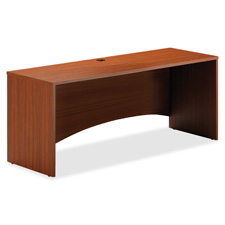 Credenza shell is part of the Mayline Bright Collection that offers subtle radiuses and arches for a unique look. Credenza shell features a 1" thick worksurface and 3/4 height modesty panel with arched detailing. Cord management includes one grommet in the top and a mouse hole in the modesty panel for cable pass-through. Design offers low-pressure laminate surface with metal-to-metal assembly connections for durability. Credenza accepts drawer and pedestal files (sold separately).