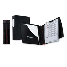 Storage binder is designed to keep project documents together in one location with no hole punching required. Unique information management active filing/storage system features a distinctive channel-locking mechanism to house and secure common filing and presentation tools that are used to categorize, segment and store paperwork. Fold-out channel strip tucks away when not in use. The I.Organize System organizes your project documents with clear structure and clear physical appearance and accommodates various types and sizes of information, materials and media. Easily storable and retrievable folders (sold separately) are interchangeable. Storage binder offers eight channels, a durable poly material, and inside front pocket with business card holder.
