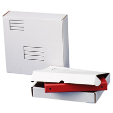 White corrugated mailer protects ring binders, catalogs and other bulky items during transit. Mailer is designed to lie flat for space-saving storage and then easily set up for use. Setup requires no tape. Mailer has preprinted address lines for neater handwritten addresses.