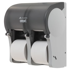 Compact, coreless tissue dispenser offers space for four rolls of toilet tissue, holding up to 6,000 two-ply or 12,000 one-ply sheets. Rolls face forward to minimize tabbing. Dispenser reduces maintenance costs with high capacity, low waste and dependable roll advancing system.