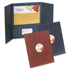 Report covers are easy to customize. French door-style covers open to reveal two stacked pockets that hold up to 50 sheets of letter-size papers. Front pocket offers a die-cut business card holder. Create custom closures with the 12 enclosed printable stickers. Stickers are removable so you can easily open each folio. Report covers feature premium metallic paper stock and include instructions and ideas for designing.