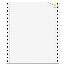 Carbonless, continuous-form computer paper is coated to transmit print from one ply to subsequent plies without using carbon paper. Paper has 1/2" margin perforations and becomes 8-1/2" x 11" once perforations are removed. For clean and easy sheet removal, 15 lb. paper features Letr-Trim perforations at the margins and between each sheet. High-quality, plain computer paper is ideal for computerized reports, forms and letters.