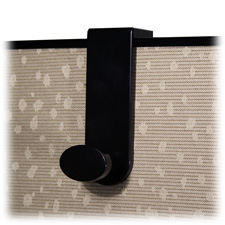 Over-the-panel single hook adjusts to fit over wall panels that measure in thickness from 1-3/16" to 4-1/16". Rounded knobs protect fabrics. Single hook is ideal for coats and sweaters, hangers, umbrellas and purses. Plastic hook includes mounting hardware and instructions.