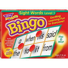 Bingo games let children practice reading 46 words from common vocabulary lists. Unique, six-way format adapts to a variety of skill levels, and offers a fun learning supplement for small groups or the entire class. Bingo Games are also ideal for learners with disabilities and anyone learning English. Set includes 36 playing cards, more than 200 chips, caller's mat and cards, and a sturdy storage box. Sight Words Bingo Games are recommended for students in kindergarten to third-grade (ages 5 to 8).