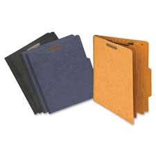 Elements Classification Folders offer document storage in six separate sections. Each folder features 2" fasteners affixed to the inside front and back cover, and double-sided fasteners on the two 15 point dividers. Each folder is made of sturdy 15 point stock. Tabs on the divider and cover are 2/5 cut right of center. Long-lasting Tyvek gussets are tear-resistant and expand 2-1/4". Folders are made of 100 percent recycled material with 30 percent post-consumer material. Assorted colors include charcoal (2), one ginger (1) and indigo (2).