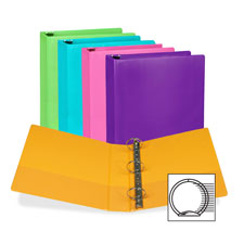 Presentation view binders feature a fashionable color and ways to organize paper easily. Clear overlay on front, back and spine allows easy customization. Round rings are mounted on the back so letter-size sheets lie flat. Two, clear inside pockets provide extra storage for loose documents. Binders also feature vinyl-covered chipboard and are 100 percent recyclable. |