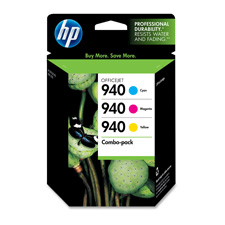 HP 940 Ink Cartridge Combo Pack includes a cyan cartridge, magenta cartridge and yellow cartridge that are all designed for use in Hewlett-Packard Officejet Pro 8000 and 8500 Series. Each cartridge delivers impressive color, professional-looking black text and images that resist fading for generations. Each cartridge yields 900 pages.