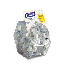 Display bowl showcases GOJO Purell Instant Hand Sanitizer in 0.5 fluid oz. bottles. Hand sanitizer kills 99.99 percent of most common germs that may cause illness in as little as 15 seconds. Simply apply to hands. No water or towels needed. Alcohol-based hand sanitizer is specially formulated with moisturizers to leave hands feeling soft and refreshed.