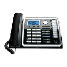 Two-line corded phone connects to Bluetooth cell phone. You can either answer or place calls using your cell phone connection as a virtual third phone line. Conference calls between cell phones and land lines. Phone also offers a two-line full duplex speakerphone, built-in digital answering system, Call Waiting/Caller ID, 99-name/number log, 10 one-touch speed dial buttons, Do Not Disturb/Privacy, auto line select and visual line status indicators. Other features include preview dialing, memory dialing, hold and mute function, digital volume control, three-party conferencing, and headset jack. Trilingual display includes English, Spanish and French. Phone is hearing aid compatible. Set on a desk or mount to a wall.