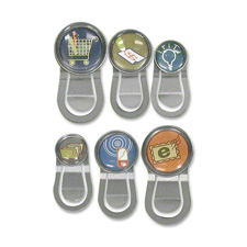 Keep these decorative pushpins with clips handy to hold items to almost any bulletin board surface. Slide notes and reminders in the attached Eureka paper clip. Assorted colorful designs help you sort notes with icons such as a grocery cart, dollar sign, light bulb, files, cell phone and a stamp with the letter E on it for email. Designs also add character to any posted information. Each pushpin has a cushy bubble top for easy application.