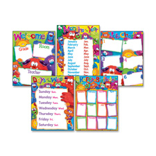 Learning Chart Combo Pack includes five colorful charts with the Furry Friends theme: Welcome, Happy Birthday, Days of the Week, Months of the Year, and Job Chart. Each chart has activities on back. Designs complement Trend Furry Friends bulletin board sets and coordinated decor. Ideal for teaching students in pre-kindergarten to third-grade and for ages 3 to 9.