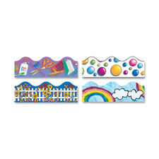 Decorate classrooms and enhance learning environments with these durable themed trimmers. Each trimmer offers colorful pattern of school tools, bubbles, wildflowers on a white picket fence or rainbows. Versatile, precut and reusable trimmers frame learning displays on bulletin boards, white boards and walls with a scalloped design. Ideal for pre-kindergarten to eighth-grade (ages 3 to 14).