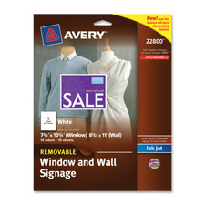 Removable window and wall signs are perfect for promoting your products, sales, logos and more. Customizable, removable signs are ideal for retail use, and because they are printable on both sides, you can use them on your storefront window or on mirrors and walls. The signs stick and stay put, and they are easy to remove, leaving no sticky residue. The 8-1/2" x 11" side is fully printable for use as a wall sign, while the 7-3/4" x 10-1/4" flip side has a removable adhesive strip that will adhere to windows with the print facing out. Easily customize the signage with your own message or design by visiting Avery Design and Print Online. Signage is designed for use with inkjet printers.