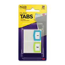 Post-it Printed Tabs offer an easy and professional solution for organizing files, binders and notebooks, without the hassle of printing templates. Each tab sticks securely and removes cleanly. Durable, repositionable tabs are labeled with numbers from 1 to 12 and come in assorted primary colors. Extra thickness prevents wear and tear from repeated handling and use. Tabs include two sets of this number range plus four blanks for easy customization.
