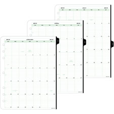Filler set for planners includes a full-year supply of monthly loose-leaf pages. Two-page-per-week spreads include ruled daily entries, appointment times from 8 AM to 5 PM on weekdays, appointment times from 8 AM to noon on Saturday and Sunday, Monday-through-Sunday scheduling, two other columns for meetings and reminders, and past, current and future months reference. Seven-hole punched refill also includes 12 monthly tabbed calendar/dividers with ruled daily blocks, loose-leaf address/phone directory, advance planning pages, 12 monthly auto mileage/expense forms, set of useful reference sheets, and page locator.