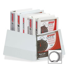 To save time and increase efficiency, Speedy Spine View Binder features a patent-pending channel construction that allows easy drop-in of spine inserts for custom graphics in seconds. Speedy Spine inserts load five times faster than traditional binders. No more wiggling, fighting or sweating to customize presentation binders. Clear overlay on front, spine and back cover allows easy customization. Two, clear inside pockets provide extra storage for loose documents. Round ring binder also features vinyl-covered chipboard and three rings mounted to the back cover to reduce wear and help the letter-size pages lie flat.