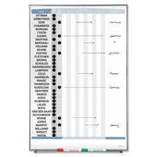 Matrix In/Out Board tracks up to 36 employees on the magnetic painted steel surface. Thin-profile whiteboard with magnetic surface doubles as bulletin board. Board includes black magnetic in/out circles, Quartet dry-erase marker and attachable marker tray for convenient accessory storage. With the innovative mounting system, you can easily hang the in/out board on cubicle walls with Cubicle Partition Hangers (MCH10, sold separately).