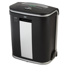 Personal/small business cross-cut shredder prevents paper jams before excess paper gets caught in cutters. Indicator light warns when too many sheets are inserted, you simply remove extra sheets and continue shredding. Self cleaning cutters reduce buildup of shreds. Shredder cross-cut shreds into 1/4" x 1-3/4" size shreds up to 16 sheets of 20 lb. paper (including CDs, DVDs, paperclips, staples and credit cards) into an eight gallon pullout drawer. Ideal for one to three users requiring medium (level 3) security for confidential and strategic documents. Shredder's auto shut-down provides convenience and conserves energy.