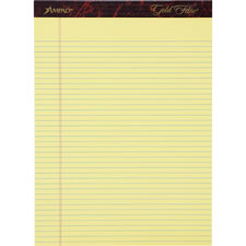 Perforated pad is ideal for office and home use. Watermarked paper will not bleed through. Leatherlike binding at top is stapled and glued. Extra-thick, chipboard back offers stiff support when writing. Sheets are legal/narrow-ruled and microperforated for clean separation. Pad contains 50 sheets of 16 lb. paper.