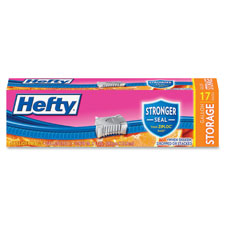 Hefty OneZip Storage Bags are great for all your food and household storage needs. Zip closed, and one click lets you know it is closed. Easy-to-use slider closes the first time, every time. You won't need to pinch or line up tracks to close. Use one gallon storage bag to organize various small items to miscellaneous office supplies to travel items. Storage bag also features a large write-on label.