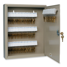 80-key steel cabinet keeps track of your "loaner" keys and organizes your business. Ideal for offices, rental management companies, and truck and auto rental companies. Simply attach keys to the numbered key tags (included) and file on the key racks slots. When a key is loaned, an "Out Key" control tag (recording the key number, key recipient and date) is filled out and placed in the same spot as the loaned key. For additional accountability, a record chart can also be filled out. SteelMaster UniTag Key Cabinet is made of durable heavy-gauge steel with a chip-resistant and scratch-resistant pearl finish. Full piano-length hinge allows you to open the cabinet fully and view all keys. A door-mounted, single-key lock secures the cabinet. Predrilled holes and mounting hardware allow easy installation. Locking door includes standard disc tumble keylock with two keys.